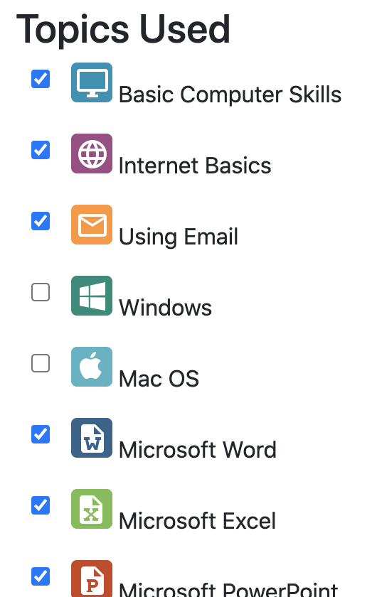 • Please be advised some of the units aligned to the Standards for Using Technology in Daily Life, such as Career Search Skills and Information Literacy, may need a higher level English reading comprehension and digital literacy skills. In particular, we recommend that learners have passed the Basic Computer Skills, Internet Basics, Using Email, and Microsoft Word assessments.